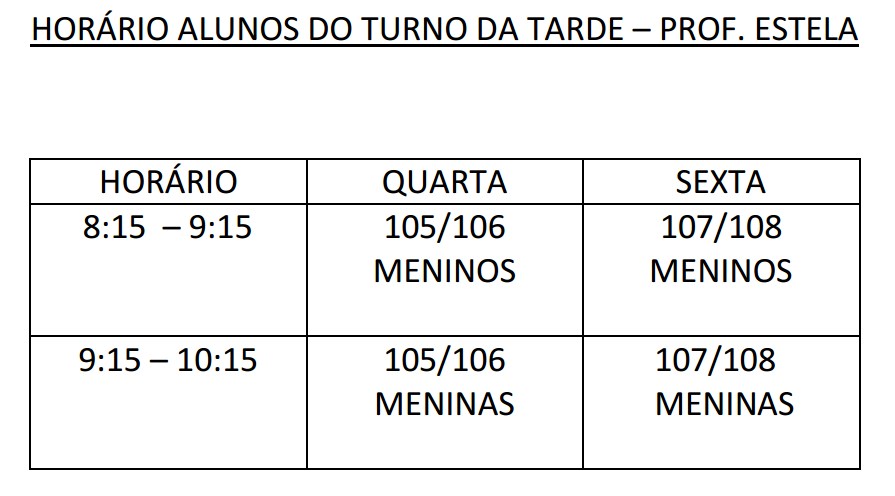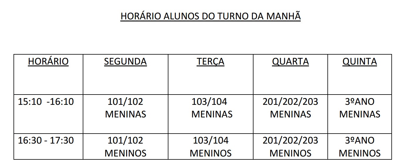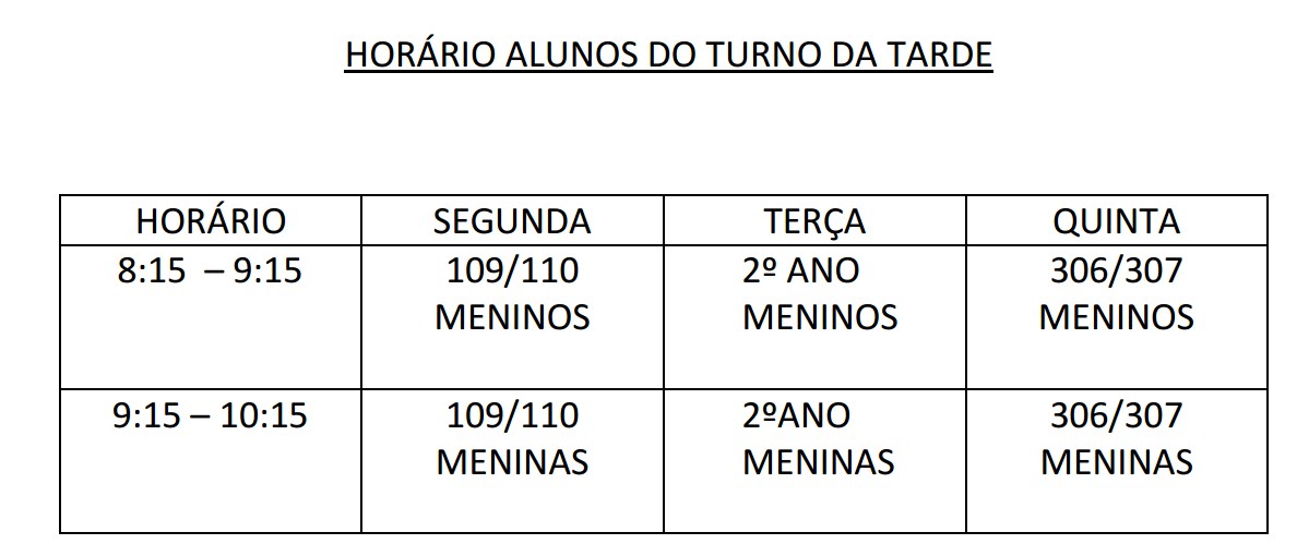 Horários Educação Física 2020
